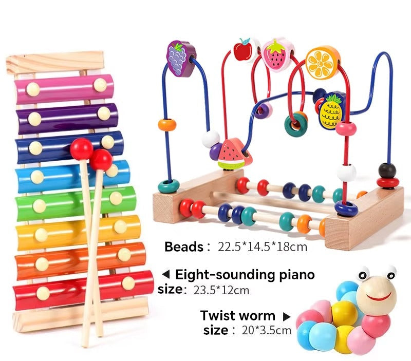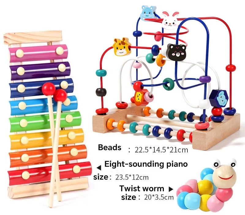 צעצוע חינוכי צבעוני ומושך במיוחד, המיועד לתינוקות ופעוטות בגילאי 1 עד 3 שנים. כולל חרוזים בגדלים, צבעים וצורות שונות שניתן להשחיל, למיין, להרכיב ולשלב בצורות מגוונות. המשחק מפתח יכולות חשיבה, ריכוז, מוטוריקה עדינה ותיאום עין-יד – תוך כדי עידוד יצירתיות והתנסות חושית. מתאים גם לבנים וגם לבנות, ומתבסס על עקרונות הלמידה המוקדמת והמונטסורית.