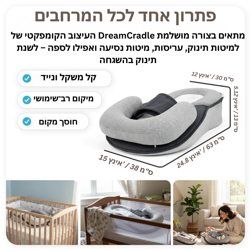 DreamCradle הוא הבחירה המושלמת להורים שמחפשים פתרון שינה חכם, בטוח ונוח – כזה שעושה הבדל אמיתי כבר מהלילות הראשונים.